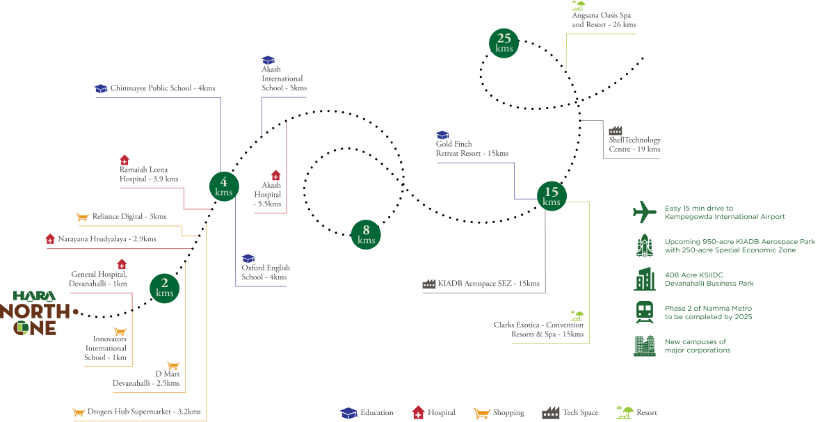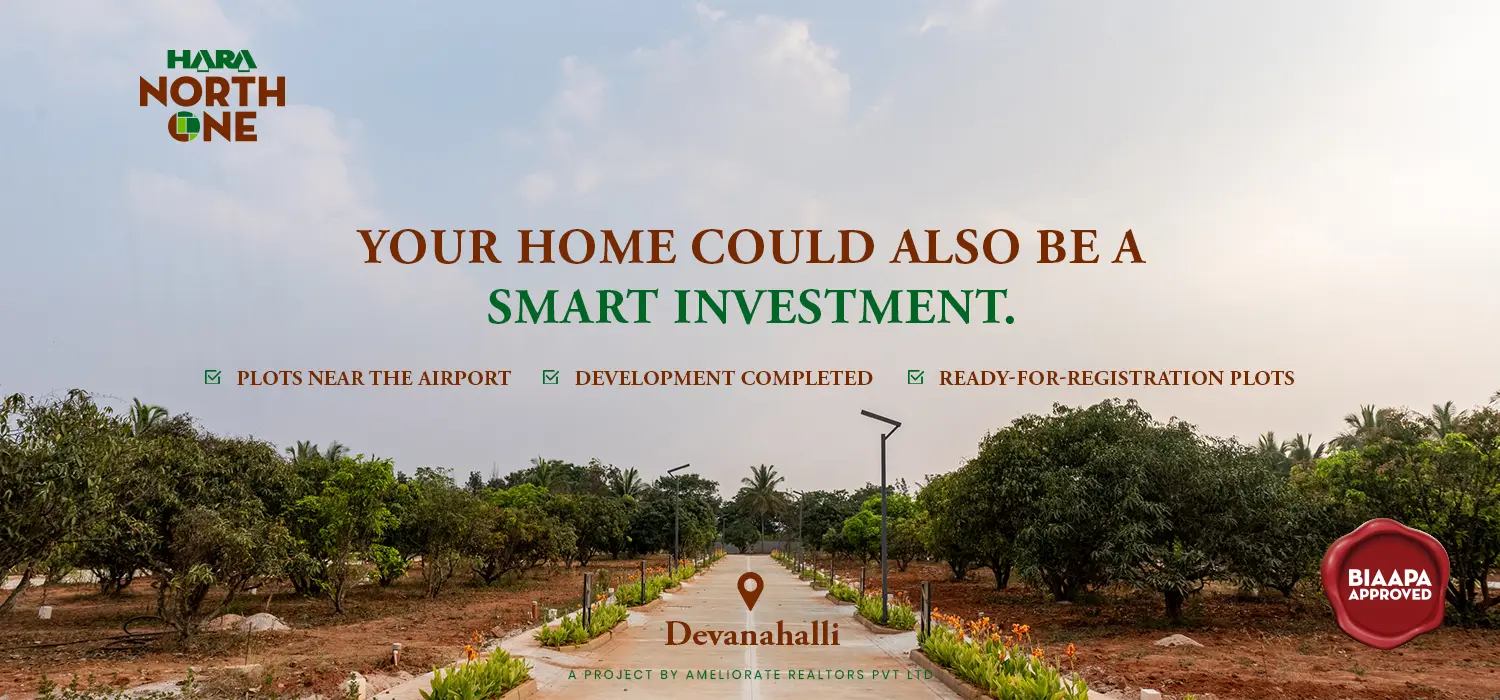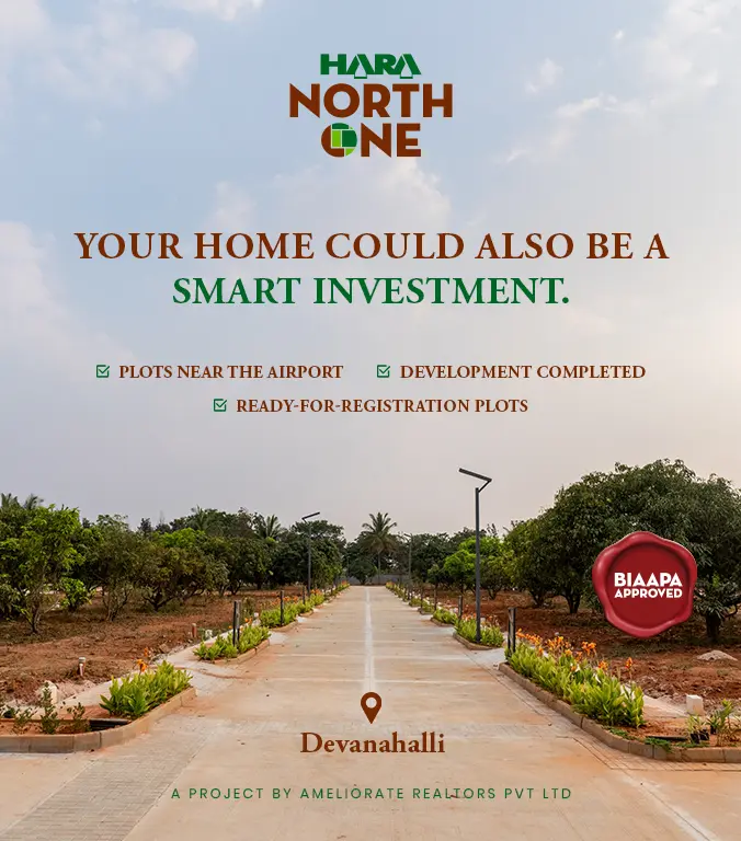 Hara North One is our latest plotted development project in Devanahallli. It's a continued demonstration of our real estate expertise, and our ability to provide reliable real estate investment opportunities. Investing in Hara North One is like planting the seeds of your dreams in beautiful Devanahalli, where your investment leverages the location's ever-appreciating status. With its evolving city connectivity via Satellite Town Ring Road (STRR) and proximity to the airport and business centers, Hara North One offers a unique opportunity to invest in a plot that turns your aspirations into reality.